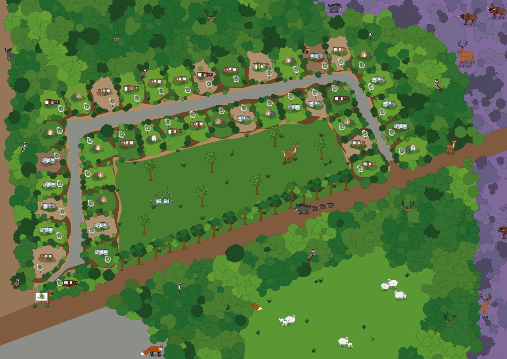 Voor de Lodges op de Posbank heb ik een plattegrond geïllustreerd die inzetbaar is om een lodge te boeken en te zien waar je verblijft.